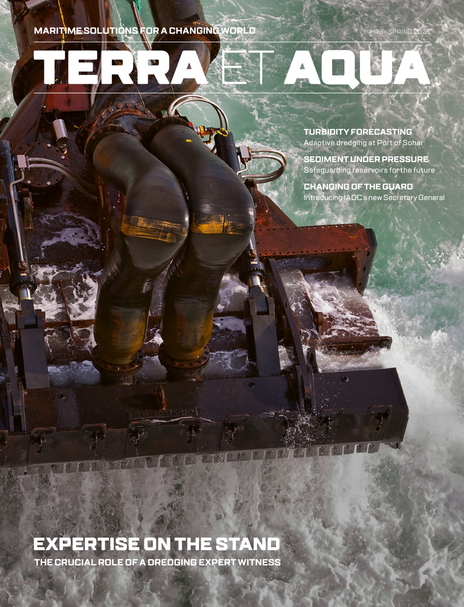 The spring issue includes articles on the role of a dredging expert witness, an interview with Arnold de Bruijn, IADC’s new Secretary General, sediment: the silent threat to reservoir sustainability and turbidity forecasting to support adaptive dredging operations.