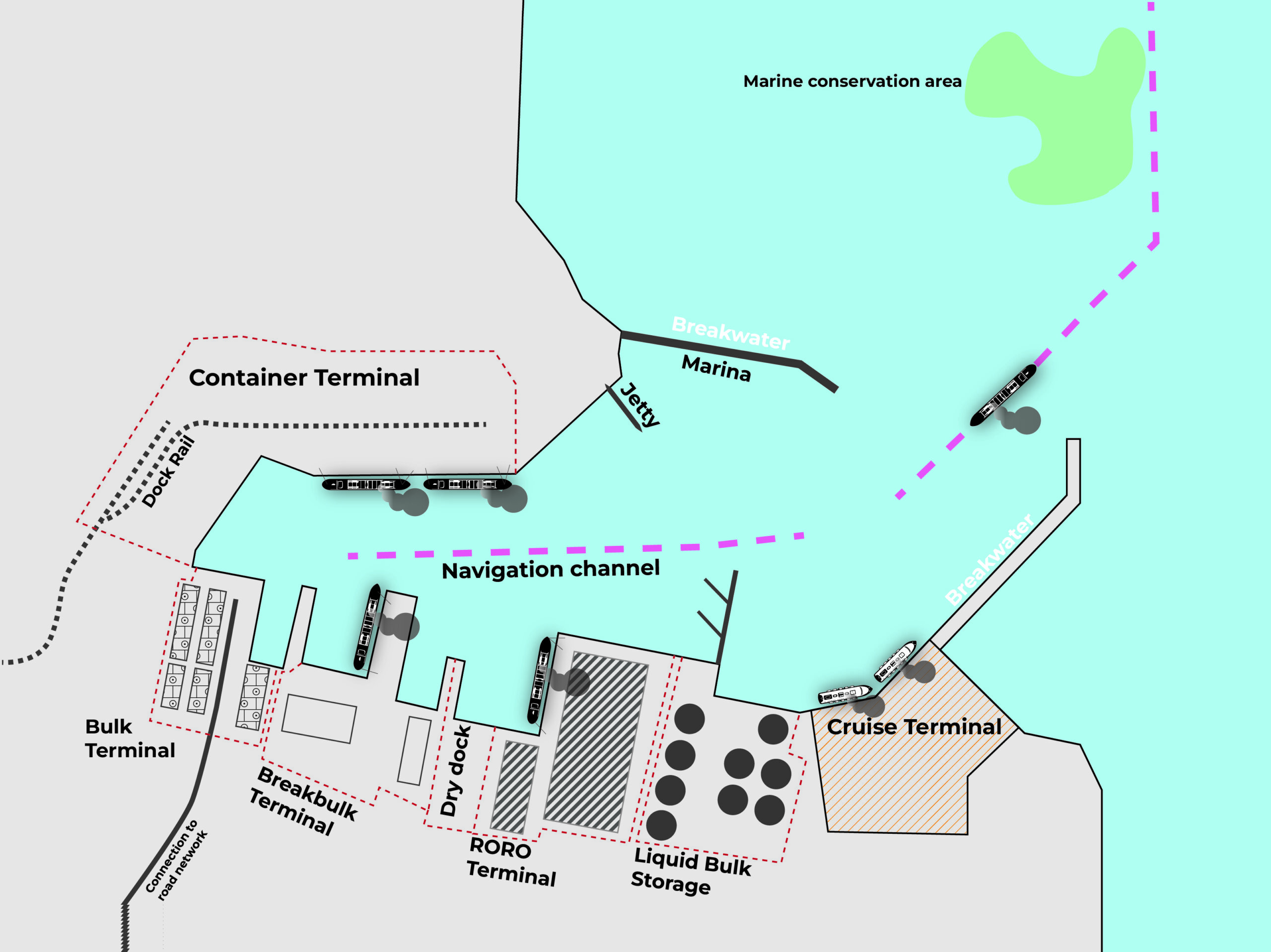 - Port authorities, navigation and river authorities and commissions, and terminal operators.