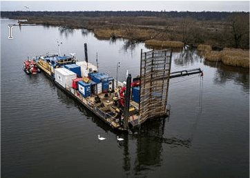 The entire project area had been the location of intense fighting and bombing during the Second World War, which on its own, in order to guarantee the safe execution of the dredging works, proved to be a vast undertaking. However, despite this anticipated challenge as well as some exceptional events, such as working during a pandemic (COVID-19) and a difficult period of cold and ice, the ambitious project was completed on time and was handed over to the Maritime Office in Szczecin in the spring of 2022.