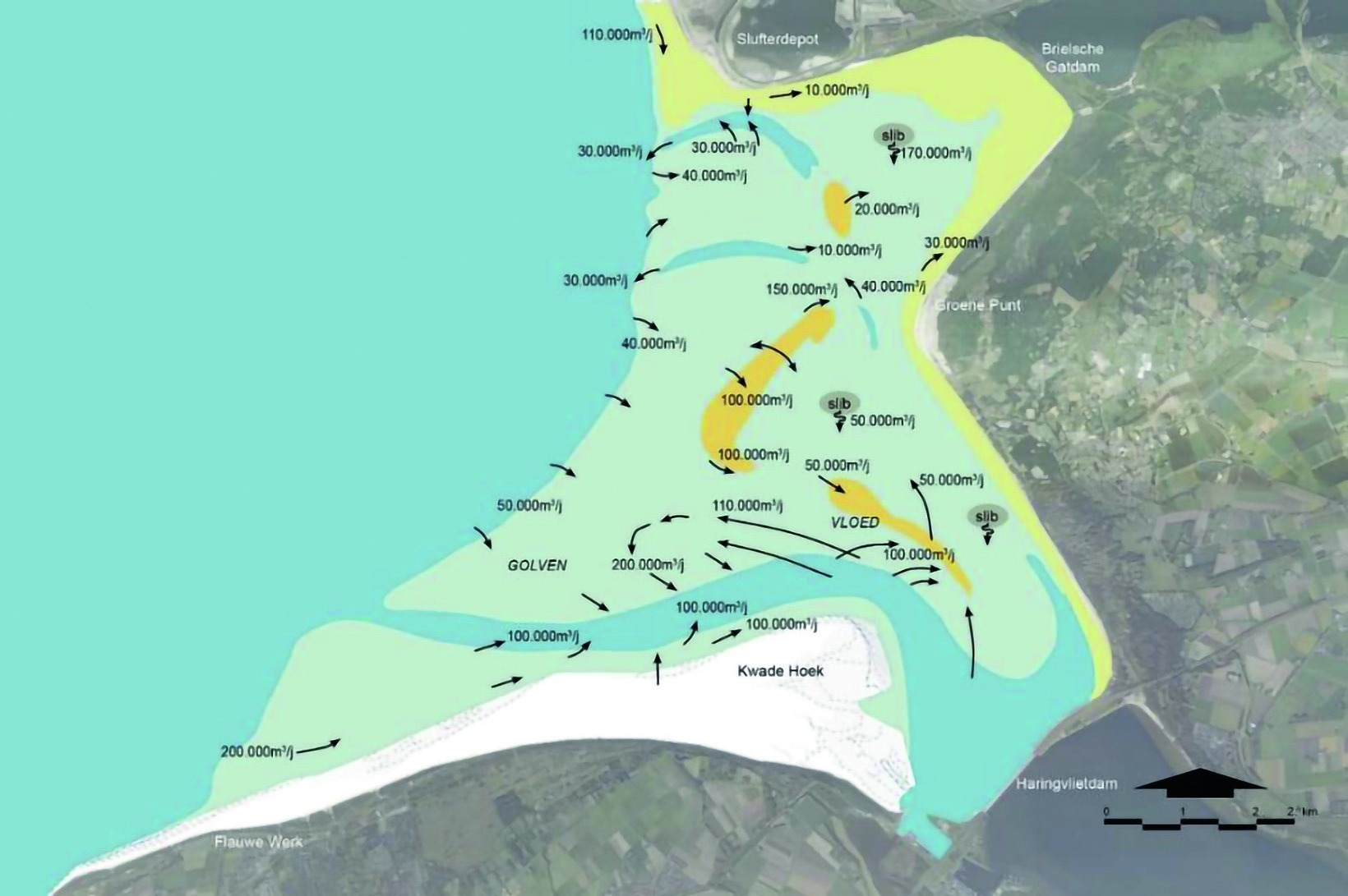 Constructing the energy storage lake in the deeper part of the Haringvliet estuary would prevent Hinderplaat from moving further towards Rockanje. The silting up of the Kwade Hoek would be stopped as well. To minimise silting, measures are being taken to direct the silt flow into a deep shipping channel that is to be constructed.