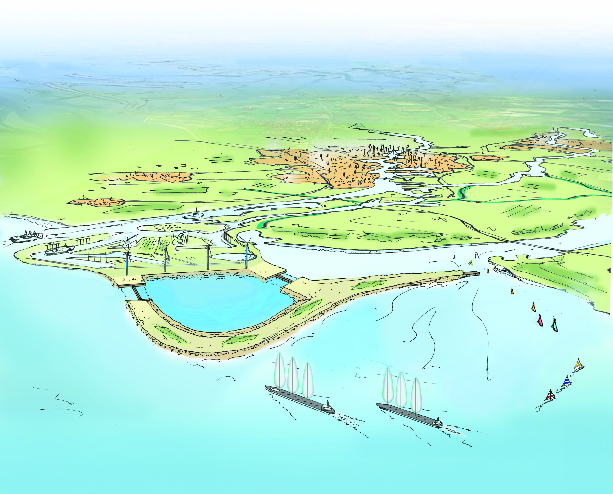 Bird’s eye view of the lake that will be created by the Delta21 project at the Haringvliet estuary. Image © C Concept Design.