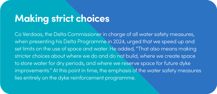 The energy storage lake in the Delta21 concept offers a wonderful opportunity for temporary water storage and a huge pumping capacity during extreme weather events such as storms. The economically valuable downstream areas of the Rhine and Meuse in particular, are threatened by the combination of storm surges, high river discharges and rising sea levels. During heavy North Sea storms, the water level along the Dutch coast can rise 4-5 metres within a few hours. In those cases, the storm surge barriers along the Dutch Delta estuaries are closed to prevent flooding. However, the protective barriers also prevent the outflow of river water into the sea. Due to climate change, sea levels are expected to rise in the coming decades. Additionally, the risk of rivers overflowing also increases as we experience more heavy rain throughout the European river basin, requiring drastic measures. Delta21 offers an attractive solution for this.