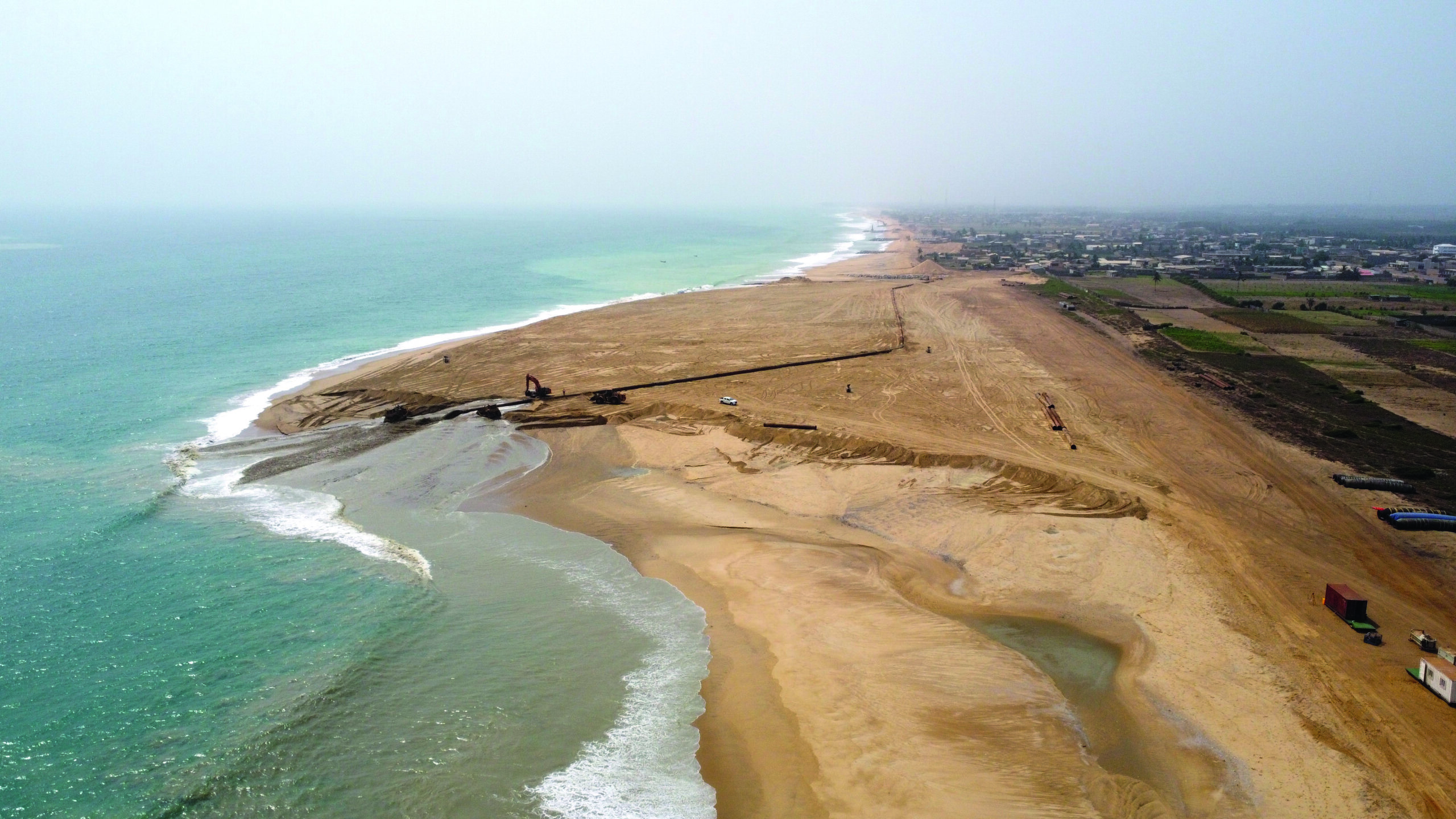 The dredging work that has been executed will preserve living conditions on a part of the Togolese and Benin coasts for decades to come. Even though that may sound unlikely, this is an accurate picture. With the construction of 15 new groynes, and the reinforcement of another six that were already in place, the project means that all the sand on the beach will be kept in place. In addition, the rock structures built at right angles to the beach mean that erosion will be less severe than in recent years.